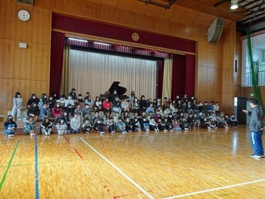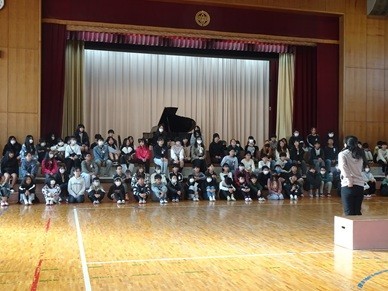 来年度新1年生として入学予定の子どもたちが、70名ほど来校してくれました。体育館に控えている5年生は緊張気味でしたが、受付を終えた園児たちと手をつなぎ、検診会場へと誘導しました。検診を終えて戻ってくる頃には、すっかり打ち解けた様子の子どもたち。来年の4月には、新1年生と新6年生として再会します。