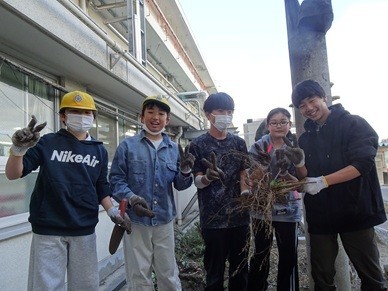 3年生は、大治町の特産野菜である小松菜とほうれん草の種植えをしました。農作業のときにいつもお世話になっている、大治町農業振興会やJAの方々にお越しいただき、普段教室では学べないことをたくさん教えていただきました。