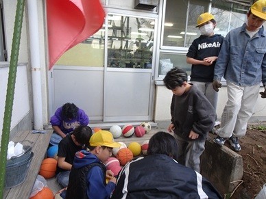 たくさんの魅力的なブースの中に、ごみ回収のテントもありました。ペットボトルや食べ物のごみを持ってきた子どもが、係の方に教えてもらいながら分別してごみを捨てていました。見回してみると、会場内にごみはほとんど落ちていませんでした。ちなみに、翌朝も会場確認と運動場の整地をしてくださったので、週明けの運動場はとてもきれいでした。