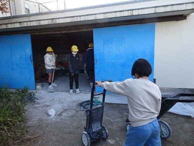 さて、実行委員のお仕事はまだ終わりません。授業後の片付けもあります。率先して体育倉庫へラインカーを片付けに行く実行委員の姿に、たくましさを感じ、思わず写真を撮ってしまいました。