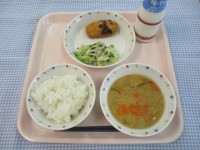 今日のカレーは、定番のじゃがいも、たまねぎ、にんじんに加えて夏野菜(かぼちゃ・ズッキーニ・モロヘイヤ・えだまめ・トマト)を入れました。旬の食べ物は1年の中で最も栄養価が高く、味も濃くなりおいしくなっています。2年生は自分たちも育てているトマトが入っていることに気付いてくれました。ズッキーニは味がさっぱりしているので、なかなか気づいてもらえませんでした。