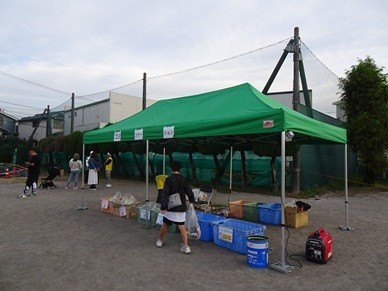 たくさんの魅力的なブースの中に、ごみ回収のテントもありました。ペットボトルや食べ物のごみを持ってきた子どもが、係の方に教えてもらいながら分別してごみを捨てていました。見回してみると、会場内にごみはほとんど落ちていませんでした。ちなみに、翌朝も会場確認と運動場の整地をしてくださったので、週明けの運動場はとてもきれいでした。