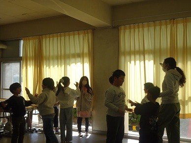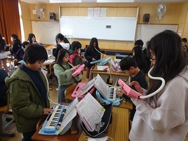 4年生はグループで合奏練習をしていました。鍵盤ハーモニカとリコーダーで演奏するのは、タンゴの名曲「ラ・クンパルシータ」です。小学生にはあまり馴染みのない曲調で難しいかと思ったのですが、掛け合いをしながら曲が進み、最後に全員のリズムがぴたりと合いました。何とも言えない気持ちよさに、顔を見合わせてにっこりしていました。