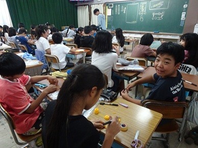 4年生の教室では理科の「空気と水」の単元で、実験キットの開封をしていました。失敗してはならないと、真剣な顔で部品を切り離していました。小学校で使う理科の実験キットには、空気でっぽうや電気自動車などがありますが、開封するときのわくわく感は今も昔も変わらないようです。