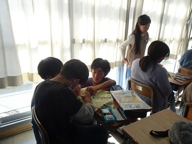 3年生の写真は先週金曜日のものです。学級同士で「宿題大交流会」を開催していました。「先生、私のノート見て」と開いてくれたページには、漢字の書き取りだけでなく、「なぜ間違えたか」「書き取りをした感想」まで書き込まれており、考えていることがよく伝わってきました。友達のノートに刺激をもらった児童もいるようでした。