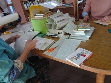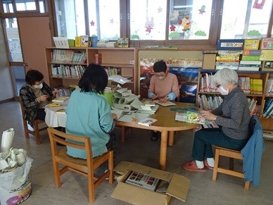 いつも本の読み語りに来てくださるたんぽぽの皆さんが、本の整備に来てくださいました。