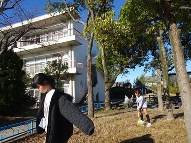 屋外では、広い運動場を整地してくれている児童や、たくさんの落ち葉をかき集めて袋いっぱいにしてくれている児童がいました。