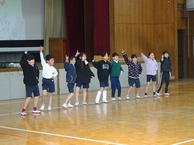 回す子、跳ぶ子、数える子、掛け声をかける子、応援する子。高学年はこれまでしてもらったように、低学年にしてあげていることが分かりました。