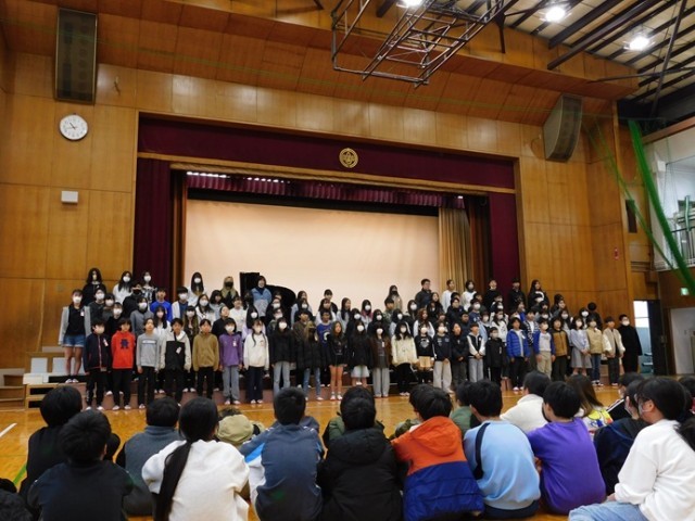 6年生からは、お礼の歌が贈られました。会場に響くきれいな歌声に、みんなで聴き入りました。心のこもった、温かくすてきな会でした。