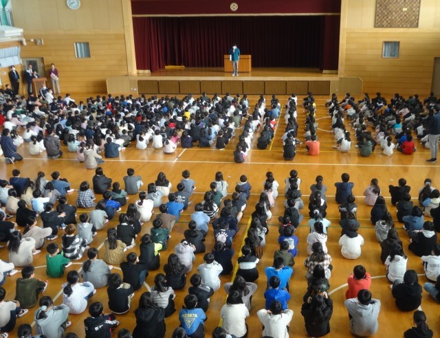 この日は久しぶりに全校児童が体育館に集まり、朝礼を行いました。生徒指導の先生からのお話の後、校長先生から「人権」にちなんだお話がありました。