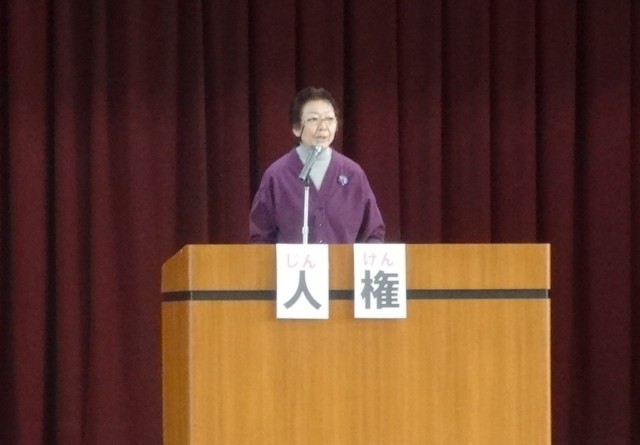 お話では「のび太さん」と「ジャイアンさん」の「公園でのやりとり」が紹介されました。その中で、「その人が楽しんでいることを邪魔することはよくない」「邪魔することを楽しむこともよくない」ということを話されました。そして「いじめ」とも捉えられるその行為は、「人権」の問題でもあることを学ぶことができました。