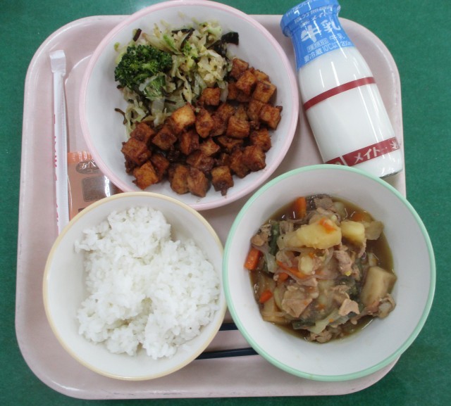 今日の給食(12月15日(月)) 公開日 2025/12/16 更新日 2025/12/15 給食 ご飯、牛乳、厚揚げの肉みそがけ、肉じゃが、昆布和え、コーヒー牛乳の素【花野菜】 花野菜は、ブロッコリーやカリフラワーなどの植物の花やそのつぼみ、茎を食べる野菜です。 ブロッコリーやカリフラワーは、11月から3月ごろまでに旬を迎えるため、今が栄養満点でおいしく食べられる時期です♪ いいね(0)