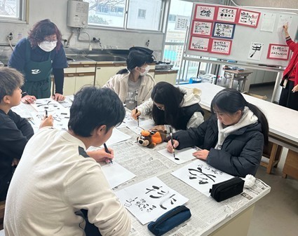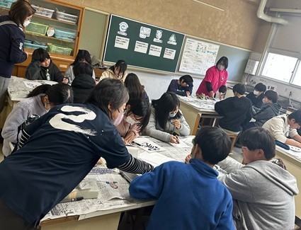 なるよ」と優しく伝えてくださったため、最初は緊張していた児童も、筆ペンを使い、思い思いに書いていきました。
