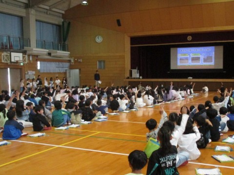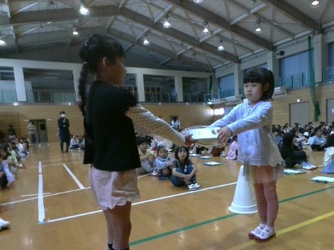 1・2年生のなかよし会が行われました。2年生が考えたクイズでは、1年生が楽しみながら学校生活のことを知るきっかけとなりました。また、一緒に校歌を歌ったり、はるちゃん体操を踊ったりする場面では、1年生の緊張もほぐれ、自然と笑顔になる姿が見られました。会の最後には、2年生が育てたアサガオの種をプレゼントし、1年生はとても嬉しそうでした。2年生にとっても、自分たちの成長を実感できる有意義な時間となりました。