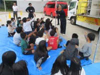 ガラスビンエッジング体験の様子です。時間が足りず一つのビンしか絵付け体験ができませんでしたが、子どもたちは楽しみながら体験していました。ビンのご協力ありがとうございました。