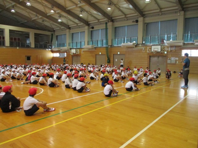 6年生の総合の授業では、異学年交流を行っています。今回は、1年生と縄跳びで交流を行いました。グループごとに6年生が1年生の子に跳び方を教えたり、一緒に大縄跳びを楽しんだりしました。どのグループも練習メニューや声掛けなどを工夫し、1年生に楽しんでもらうことができました。