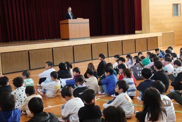 着任式では、新しく大治小学校に赴任された先生方をお迎えしました。 先生方お一人ずつから、ご自身の得意なことや趣味、そして児童のみんなへ向けたメッセージをいただきました。新しい先生方との出会いに、子どもたちも目を輝かせてお話を聞いていました。
