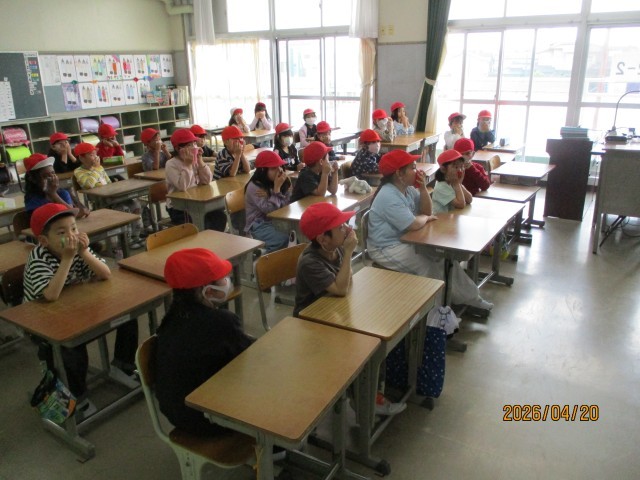 今年度初めての避難訓練を行いました。給食室からの火災を想定して、口元をマスクやハンカチで覆いながら素早く避難することができました。
