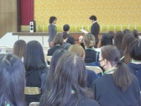 学校紹介をしたあとは、児童会役員による「西小クイズ」がありました。頭の上で○や×...