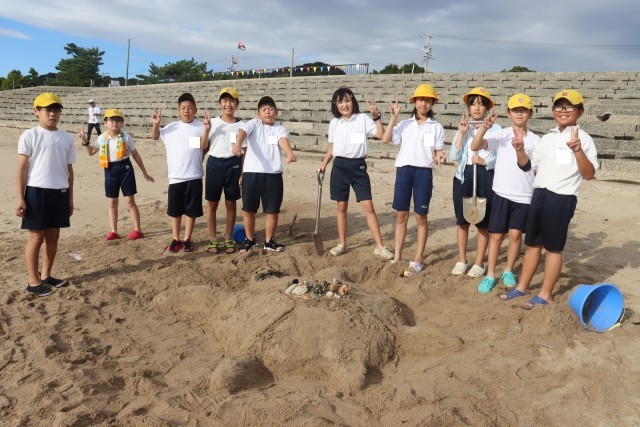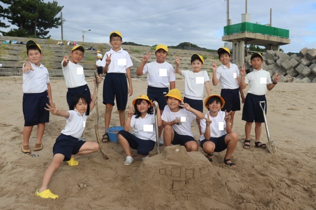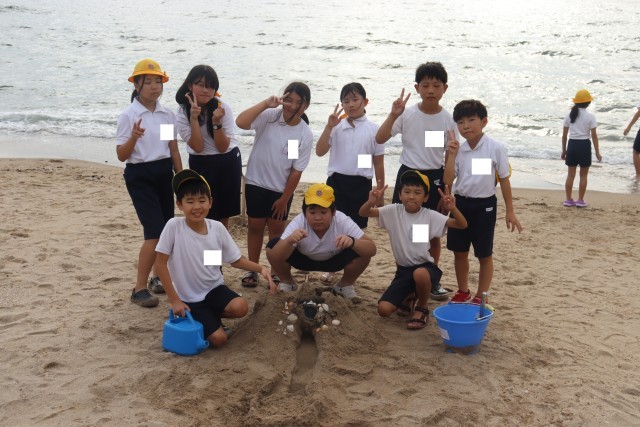 5年生 野外教室 砂の造形 公開日 2025/09/27 更新日 2025/09/27 5年生 野外炊飯のあとは、浜辺へ行って砂の造形を行いました。どのグループも力作が完成し、満足そうでした。 いいね(1)