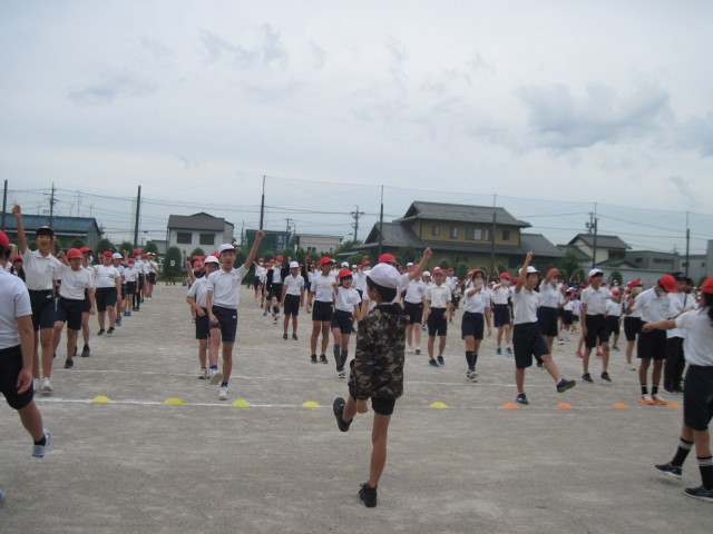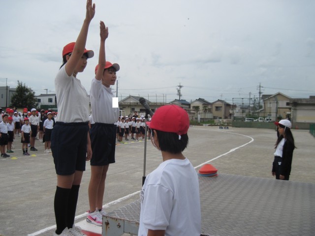 入退場、開・閉会式、児童宣誓、はるちゃん体操を練習しました。