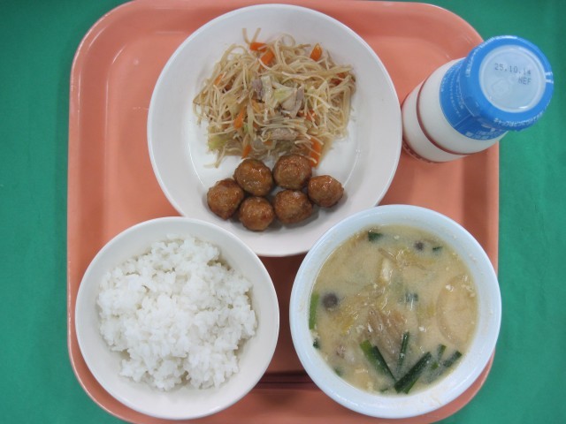 ご飯 牛乳 肉団子の甘酢あんかけ 炒めビーフン ピリ辛豆乳スープ