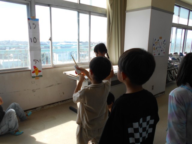 生活科の学習で10月6日(月)に1組2組、7日(火)に3組が2年生とおもちゃで遊びました。