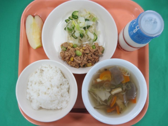 10/14 今日の献立 公開日 2025/10/14 更新日 2025/10/14 今日の献立 ご飯 牛乳 ツナそぼろ 即席漬け のっぺい汁 りんご りんごの旬は品種によって異なりますが、10月~2月頃が最も市場に出回る量が多くなります。給食ではりんごを洗浄して消毒し、また洗浄してから皮ごと切っています。皮は食物繊維やビタミンCなど栄養を豊富に含んでおり、果肉より栄養価が高くなります。旬をむかえるりんごをご家庭でも味わってはいかがですか? いいね(0)