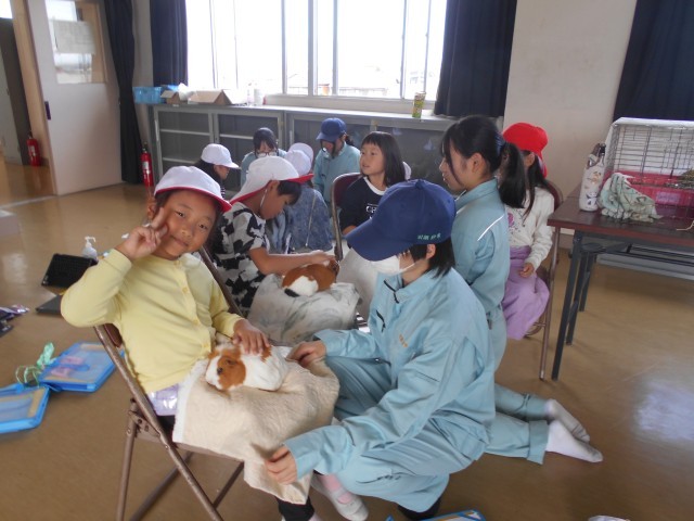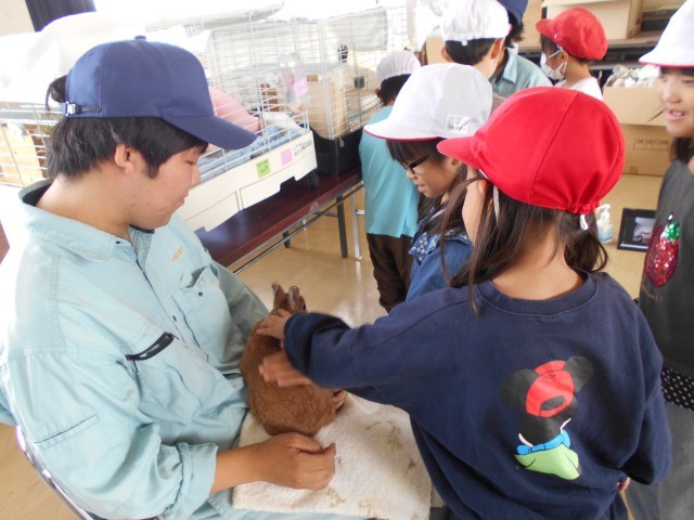 動物が怖いと思っていた子も高校生のお兄さんやお姉さんのサポートを受け、初めて動物に触れることができた子もいました。
