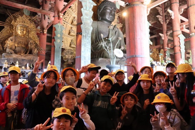 6年生 修学旅行 その1 公開日 2025/10/24 更新日 2025/10/24 6年生 23日(木)・24日(金)は6年生最大の行事となる修学旅行でした。天候にも恵まれ、しっかりと出発式を行うことができました。東大寺には多くの観光客がいましたが、大仏の大きさや迫力を実際に肌で感じることができました。 いいね(4)