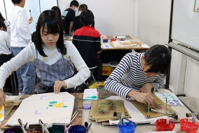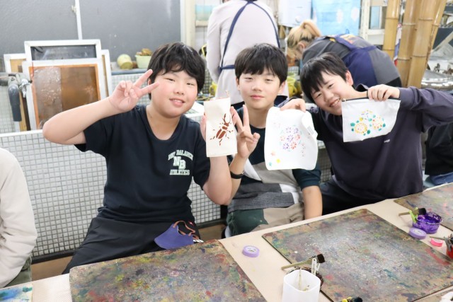 6年生 修学旅行 その3 公開日 2025/10/24 更新日 2025/10/24 6年生 北野天満宮を拝観後は、友禅染体験をしました。いろいろな型紙を自分で選び、すりこんでいきました。どの子も世界に一つだけのすてきな作品を完成させることができました。宿泊場所では、美味しい夕食を食べました。 いいね(4)
