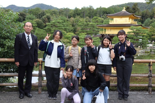 6年生 修学旅行 その6 公開日 2025/10/24 更新日 2025/10/24 6年生 映画村を出た後は、金閣へ行きました。きらきらと輝く様子に子どもたちは驚いていました。昼食会場でも元気いっぱいの子どもたちでした。解散式まで、落ち着いて行動することができました。保護者の皆様、お迎えありがとうございました。6年生の皆さん、たくさんのお土産とお土産話に花を咲かせてください! いいね(4)