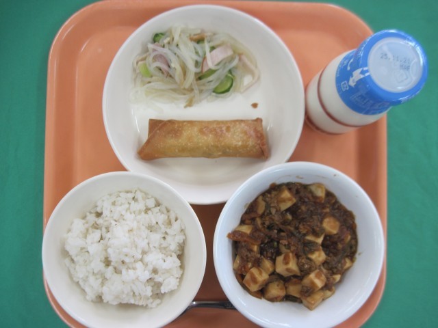 11/10 今日の献立 公開日 2025/11/10 更新日 2025/11/10 今日の献立 ご飯 牛乳 鶏春巻き 麻婆豆腐 春雨サラダ 今日の春巻きは、いつもの豚肉にかわり鶏肉が入っており、青じそでさわやかな風味がします。「しそ入ってるのわかったよ!」と子どもたちも気づいていました。春巻きは人気メニューで、おかわりのじゃんけんがいろいろなところで行われていました。 いいね(0)