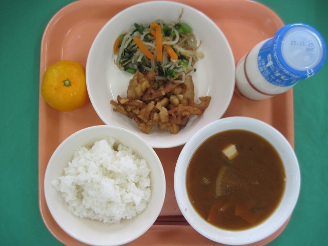 11/17 今日の献立 公開日 2025/11/17 更新日 2025/11/17 今日の献立 ご飯 牛乳 鶏とれんこんと大豆の揚げてり 小松菜のごま和え 大治野菜の味噌汁 みかん 今日は「大治と愛知の魅力を感じる学校給食の日」として、大治町でとれた小松菜と大根を給食に使いました。月に数回「大治町地産地消学校給食会」の方々が新鮮な野菜を学校給食用に提供してくださっています。また、デザートに秋から冬に旬をむかえるみかんを出しました。甘さが増してきておいしいみかんでした。 いいね(0)