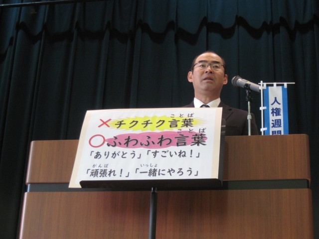 朝礼(人権講話)&表彰がありました その1 公開日 2025/12/01 更新日 2025/12/01 今日の大治西小 1日(月)朝礼(人権講話)がありました。始めに、児童会会長から人権週間で取り組むキャンペーンについて話がありました。その後、校長先生のお話がありました。「ふわふわことば」をたくさん使いましょう!というお話をしていただきました。 いいね(0)