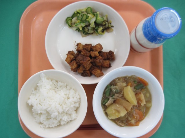 12/15 今日の献立 公開日 2025/12/15 更新日 2025/12/15 今日の献立 ご飯 牛乳 厚揚げの肉味噌かけ 昆布和え 肉じゃが 肉じゃがは人気メニューの一つです。じゃがいもは男爵を使い、ほくほくに仕上がりました。じゃがいもはビタミンCが豊富で加熱に強く、料理をしてもなくならずにとることができるのが特徴です。 いいね(0)