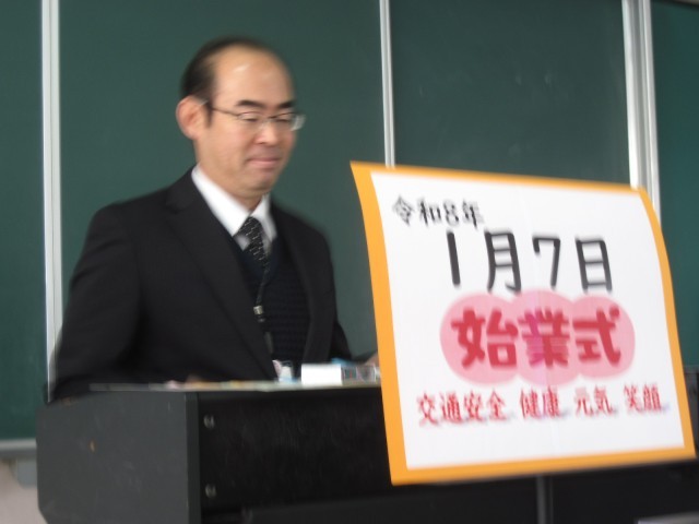 校歌斉唱後、生徒指導担当の先生から、冬休みの過ごし方について「いけ!はるちゃん」を合い言葉に話をしていただきました。