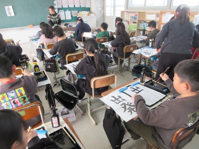 4年生 書写 公開日 2026/01/20 更新日 2026/01/20 4年生 新しい年、3学期のスタートにあたり、「出発」の文字を書きました。子どもたち、「はるボラ」の皆さんのご支援をいただきながら、集中した様子で筆を進めていました。 いいね(0)