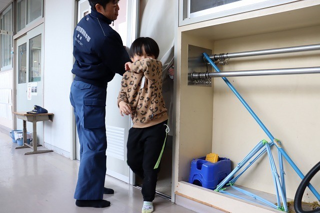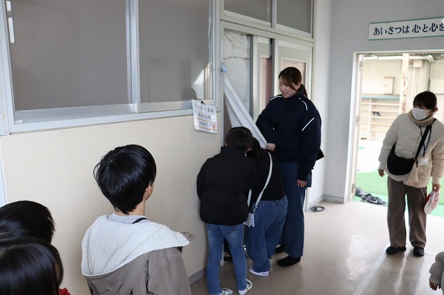 2年生 煙ハウス体験 公開日 2026/01/26 更新日 2026/01/26 2年生 海部東部消防署のご協力をいただき、2年生が煙が充満した火災現場での避難を想定した「煙ハウス体験」を行いました。職員から説明を受けたあと、煙で満たされた会議室に身を低くかがめながら入り、煙を吸い込まないようにハンカチなどで口と鼻を押さえ、手探りで出口を目指しました。出口から出てきた児童は安心した様子で、中には「助かった」と声を漏らす人がいました。 いいね(0)
