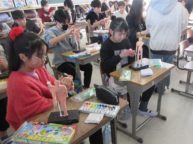 6年生 図画工作 ~未来の自分を想像してみよう~ 公開日 2026/01/28 更新日 2026/01/28 6年生 卒業が近づく6年生は、未来の自分の姿を想像し、紙粘土を使って像を制作しています。キットの芯棒にアルミホイルや紙粘土で肉付けし、着色した紙粘土で仕上げています。自分が将来就きたい職業をイメージし、細部にまでこだわって制作を進めていました。 いいね(0)