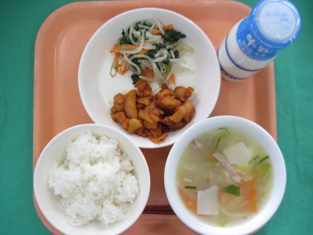 2/16 今日の献立 公開日 2026/02/18 更新日 2026/02/17 今日の献立 ご飯 牛乳 ヤンニョムチキン&ポテト ナムル 米粉ワンタンスープ ヤンニョムチキンの「ヤンニョム」は韓国料理のコチュジャンや醤油、砂糖、にんにくなどを混ぜ合わせた甘辛い合わせ調味料のことです。下味をつけて片栗粉をつけた鶏肉ととじゃがいもを揚げて、タレをからめました。甘辛い味で子どもたちは「ごはんにめっちゃ合う!」「おいしい!」といいながら食べていました。 いいね(0)