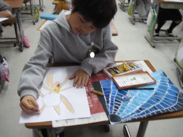 2年生 図工「カラフルくものす」づくり 公開日 2026/03/03 更新日 2026/03/03 2年生 図画工作の授業で「カラフルくものす」を制作しています。今日は、クモの巣にのせるクモを描きました。クモの巣に塗った色と同じような色でクモを描く子もいれば、全く違う色で描く子もいて様々でした。友達のクモの巣に自分のクモをのせ、色の違いを楽しみました。 いいね(0)