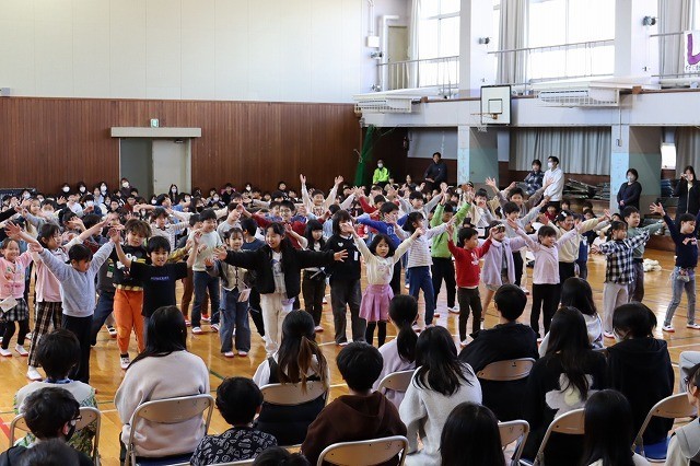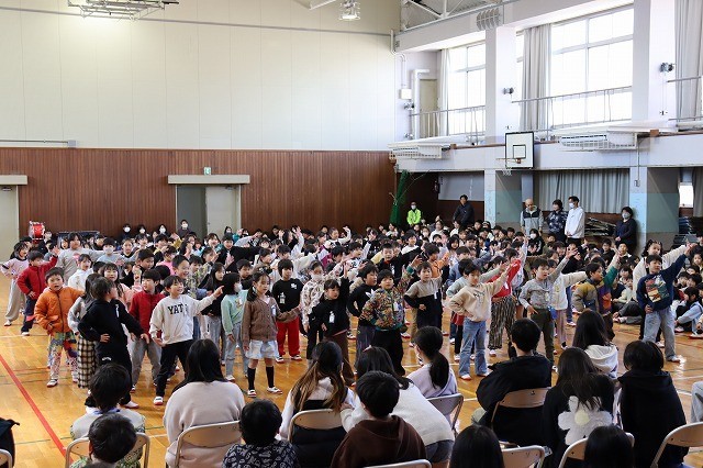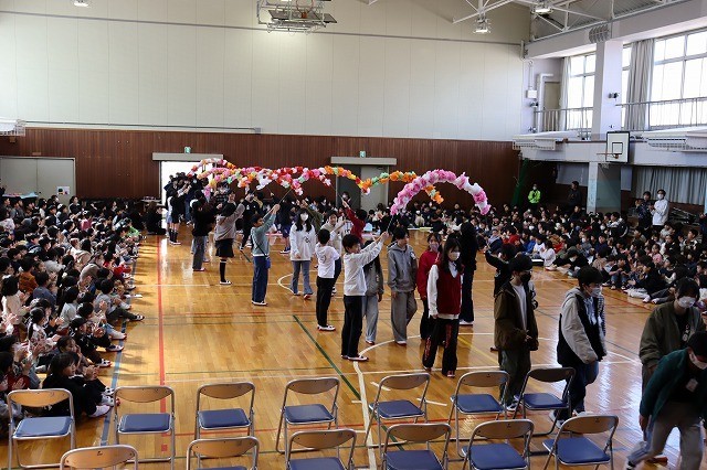 学年ごとに工夫を凝らし、ダンスや歌、寸劇、合奏などを披露し、代表者から言葉が述べられました。