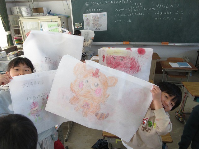 また、中には、先日発表した大治西小学校の公式キャラクター「にし丸くん」「はるクマ」「ウェスト」を描く人もいました。