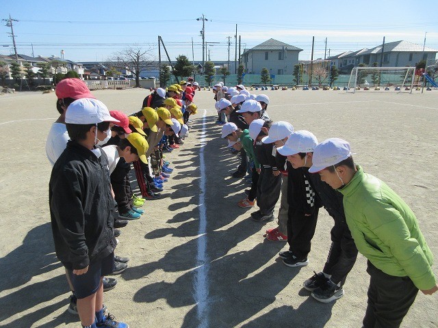 2年生との力の差を考慮して考えたルールにより、試合開始のあいさつ後、楽しくプレーすることができました。