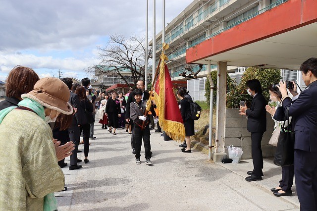 第49回卒業式 その3 公開日 2026/03/19 更新日 2026/03/19 6年生 屋外には、保護者や地域の皆様、教職員による花道が設けられ、在校生代表が旗手を務める校旗を先頭に「送り出し」が行われました。卒業生の皆さん、6年間よく頑張りました!大治西小学校での経験を糧に、中学校でも活躍してください。 いいね(0)