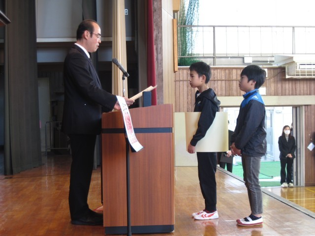 今年度の学年をよく頑張りましたという意味で修了証を渡しました。