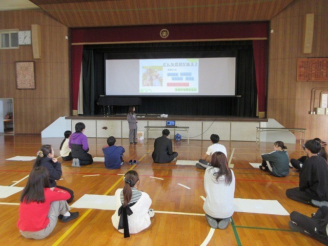 エピペン講習は、養護教諭を講師とし、身体に表れる変化や現場対応、エピペンの使用方法について具体的に学びました。
