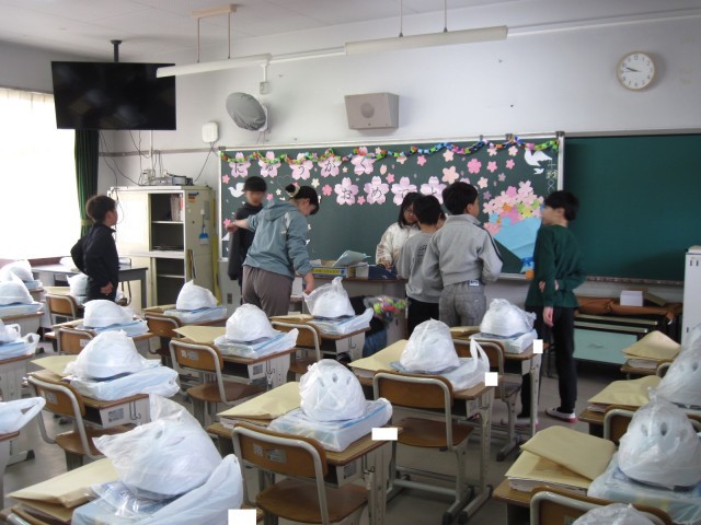 7日(火)新6年生が登校し、明日の入学式に向けて準備を行いました。