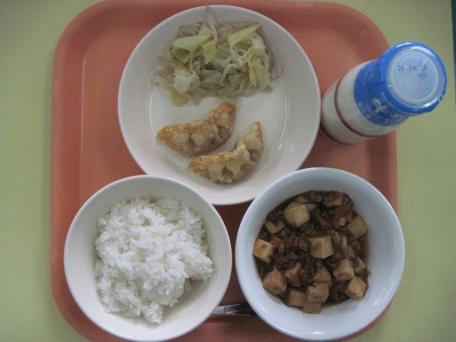 ご飯 牛乳 パリパリ餃子 麻婆豆腐 うましおきゃべつ